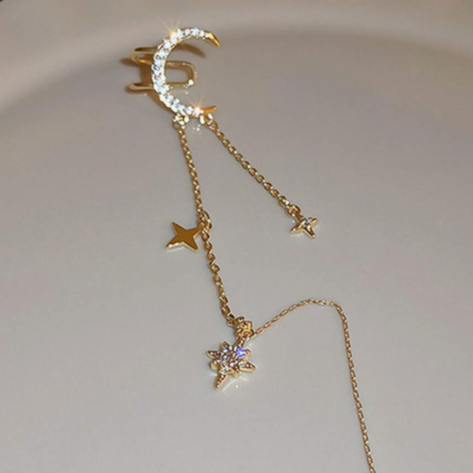 Set de 2 Pendientes Colgantes Clip de Media Luna y Estrellas