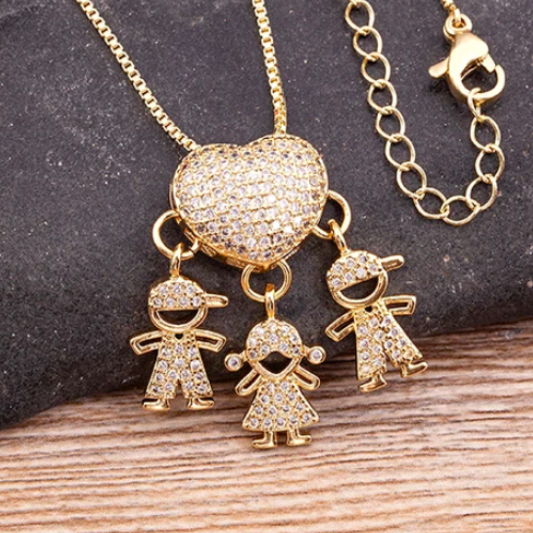 KidsHeart™ - Collar Elegante de Corazón con Dijes Hijos