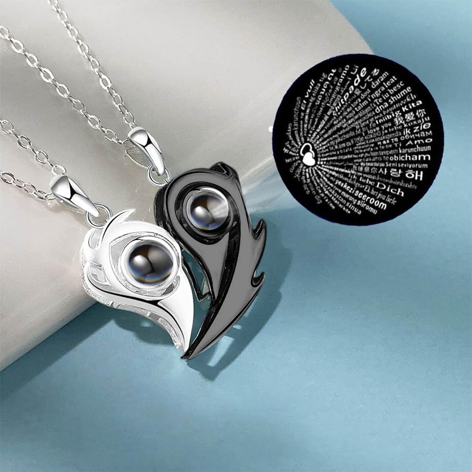 - Obtén este hermoso collar de 100 idiomas con la frase "I love you" para tu amante, esposa, y derrite su corazón. Utilizando la tecnología de nano micro-tallado, "I love you" en 100 idiomas diferentes está tallado en la piedra del amor. Construye una relación más cercana con tus seres queridos.