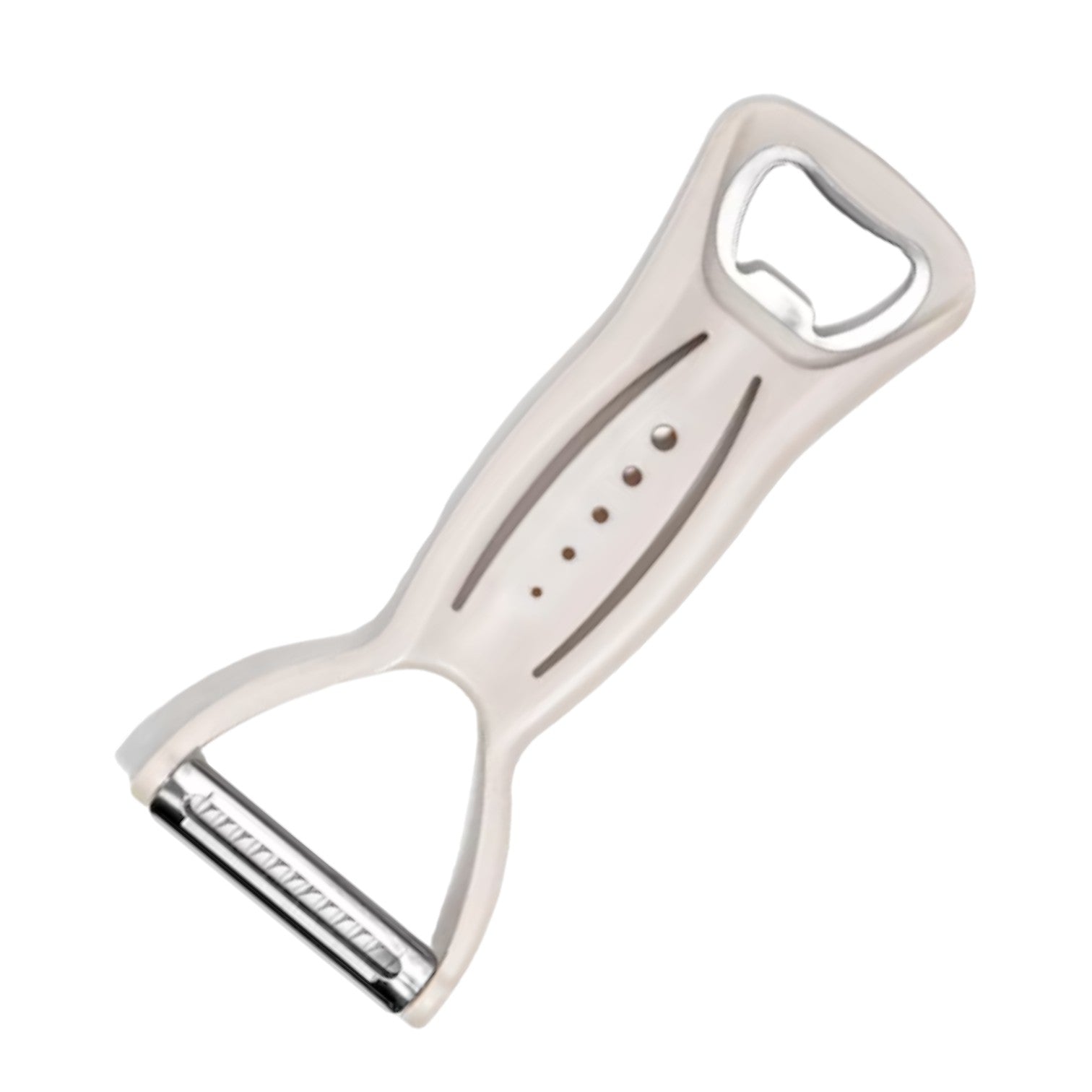 El pelador + abrelatas es un versátil utensilio de cocina diseñado para proporcionar dos funciones esenciales en un solo dispositivo. Con su diseño ergonómico y funcional, este utensilio facilita la tarea de pelar frutas y verduras, así como la apertura de latas de manera eficiente, convirtiéndose en un compañero indispensable en la cocina.