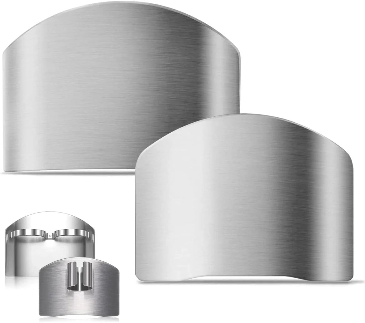 - Material de calidad El protector de dedos de cocina está hecho de acero inoxidable de primera calidad, que no se oxida, resistente a la corrosión, fácil de cuidar y duradero. La superficie lisa permite que su cuchillo se deslice suavemente mientras asegura que sus dedos estén protegidos de cortes accidentales.