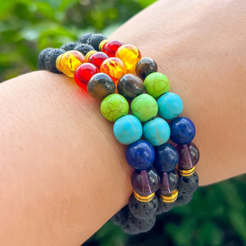 Pulsera Elástica de Lava Negra y 7 Chakras