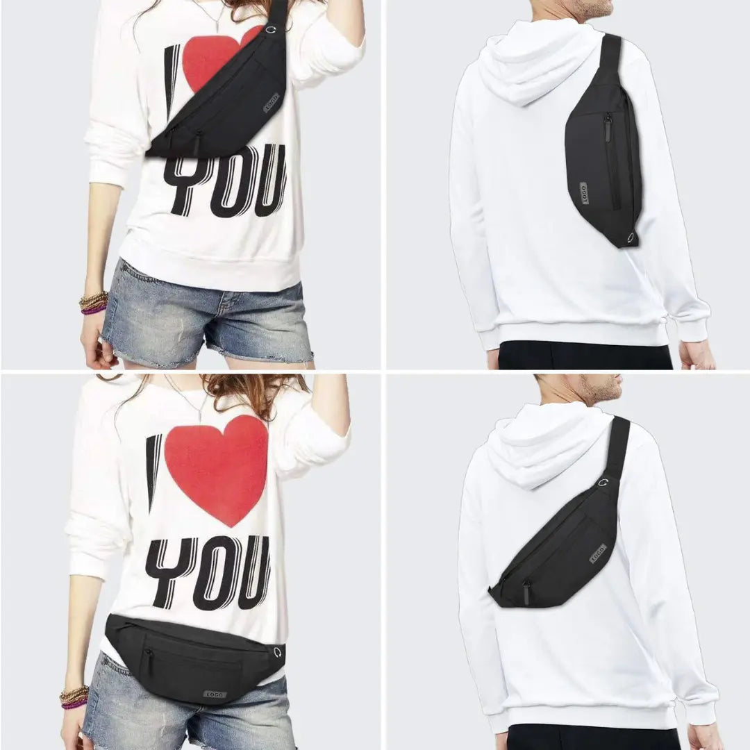 - Riñonera de estilo cambiable, muchas formas de usar: ya que la cómoda correa larga es ampliamente ajustable. Hay muchas maneras de usar esta riñonera: puede usarla en frente de su cintura , atrás en su cadera, inclinado sobre su pecho o sobre su hombro.